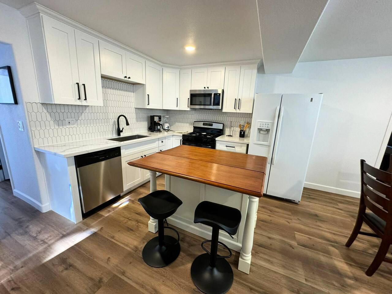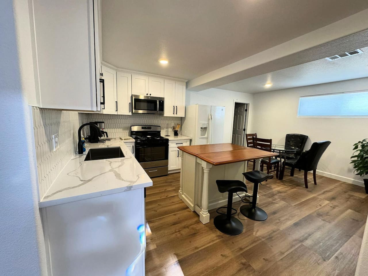 Gourmet Kitchens: Both kitchens are fully equipped with stunning quartz countertops, premium appliances, and custom cabinetry, making them perfect for cooking and entertaining.
