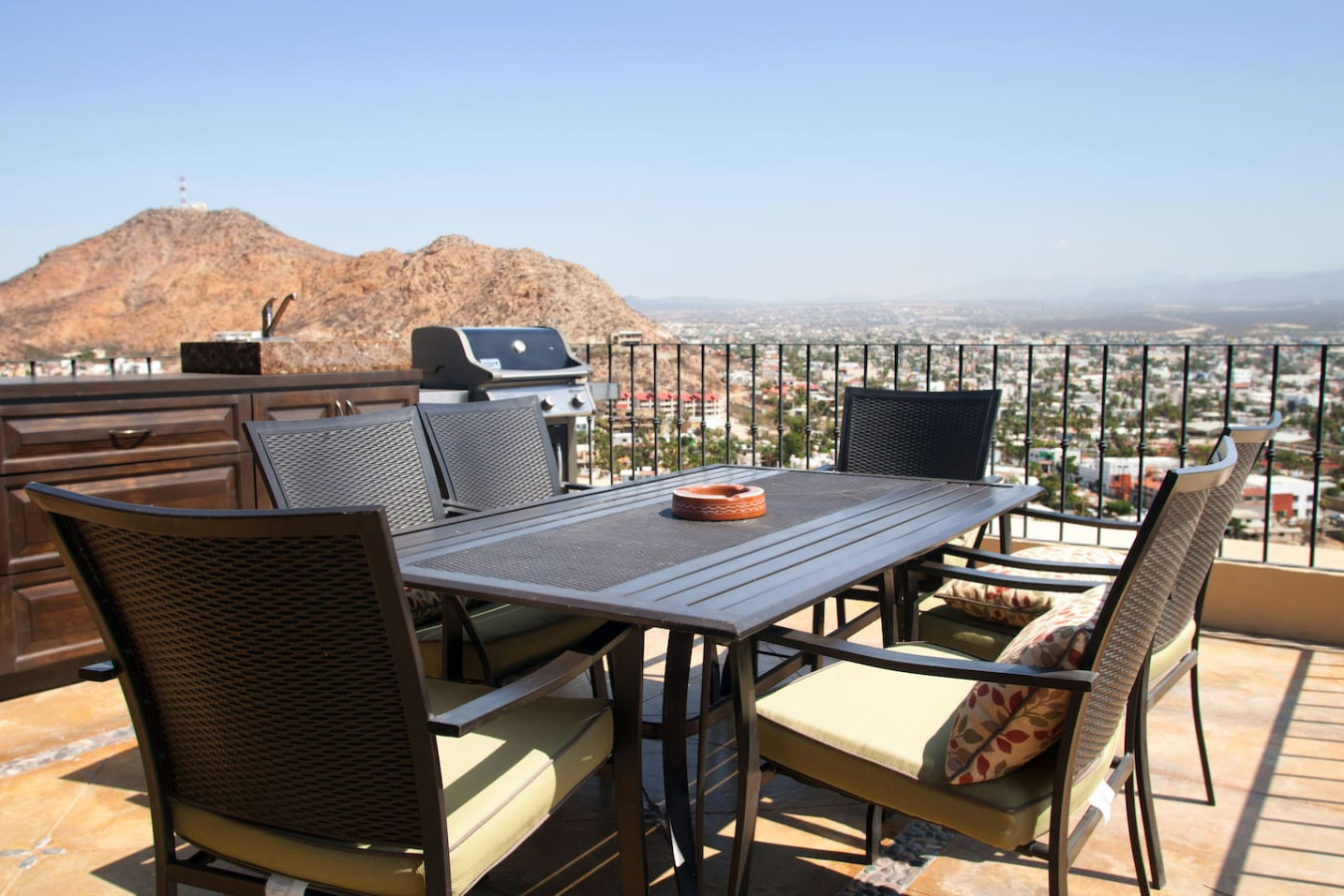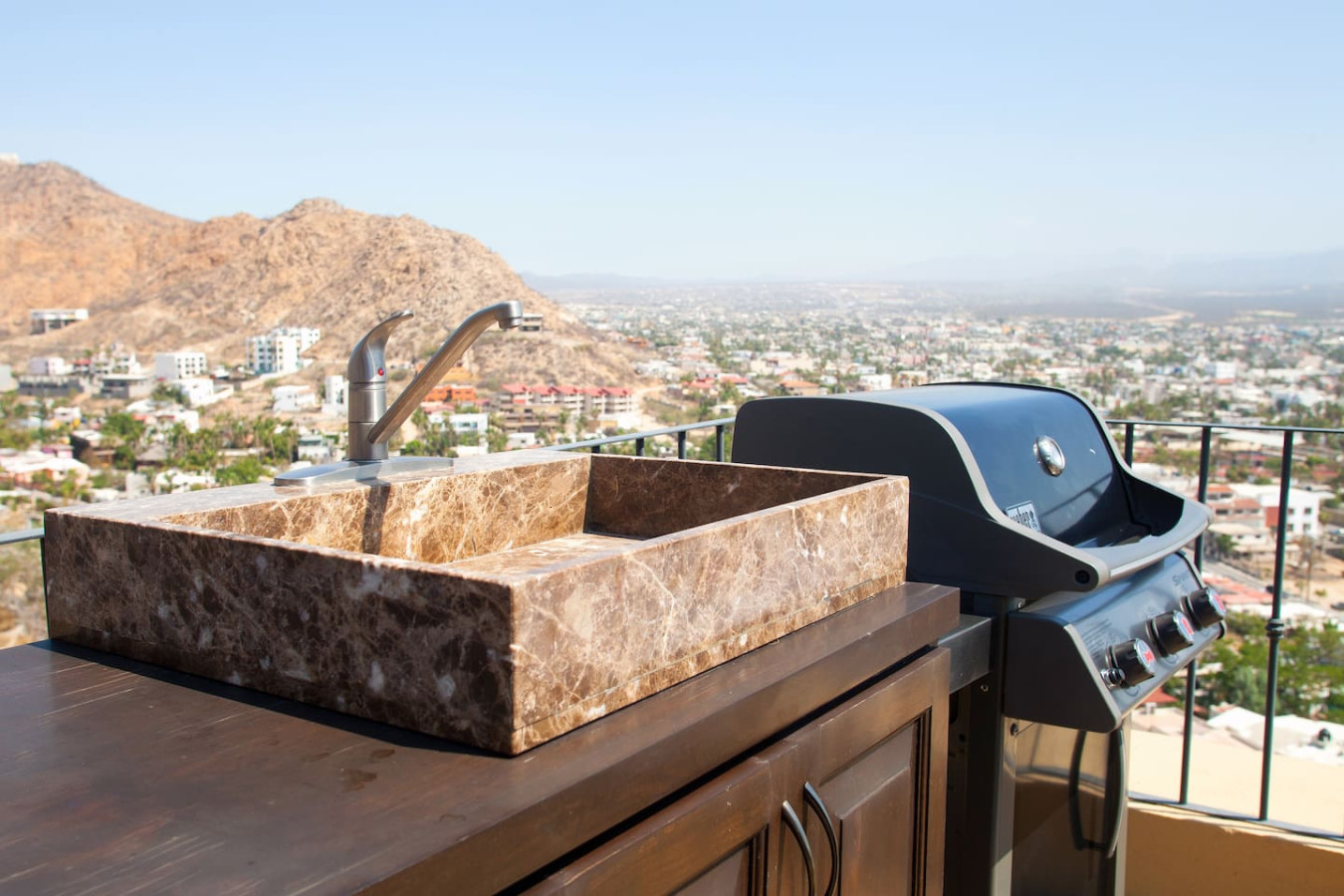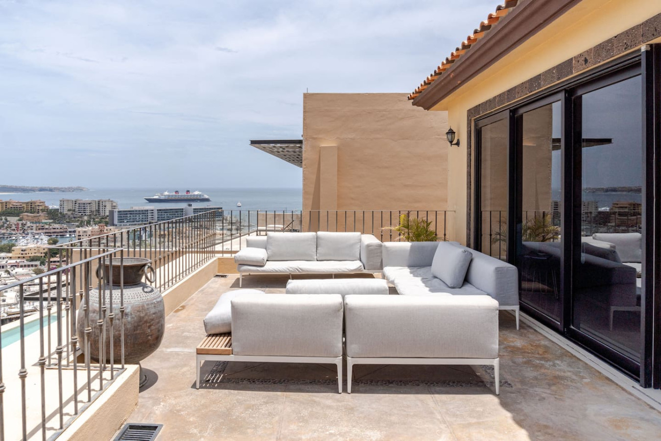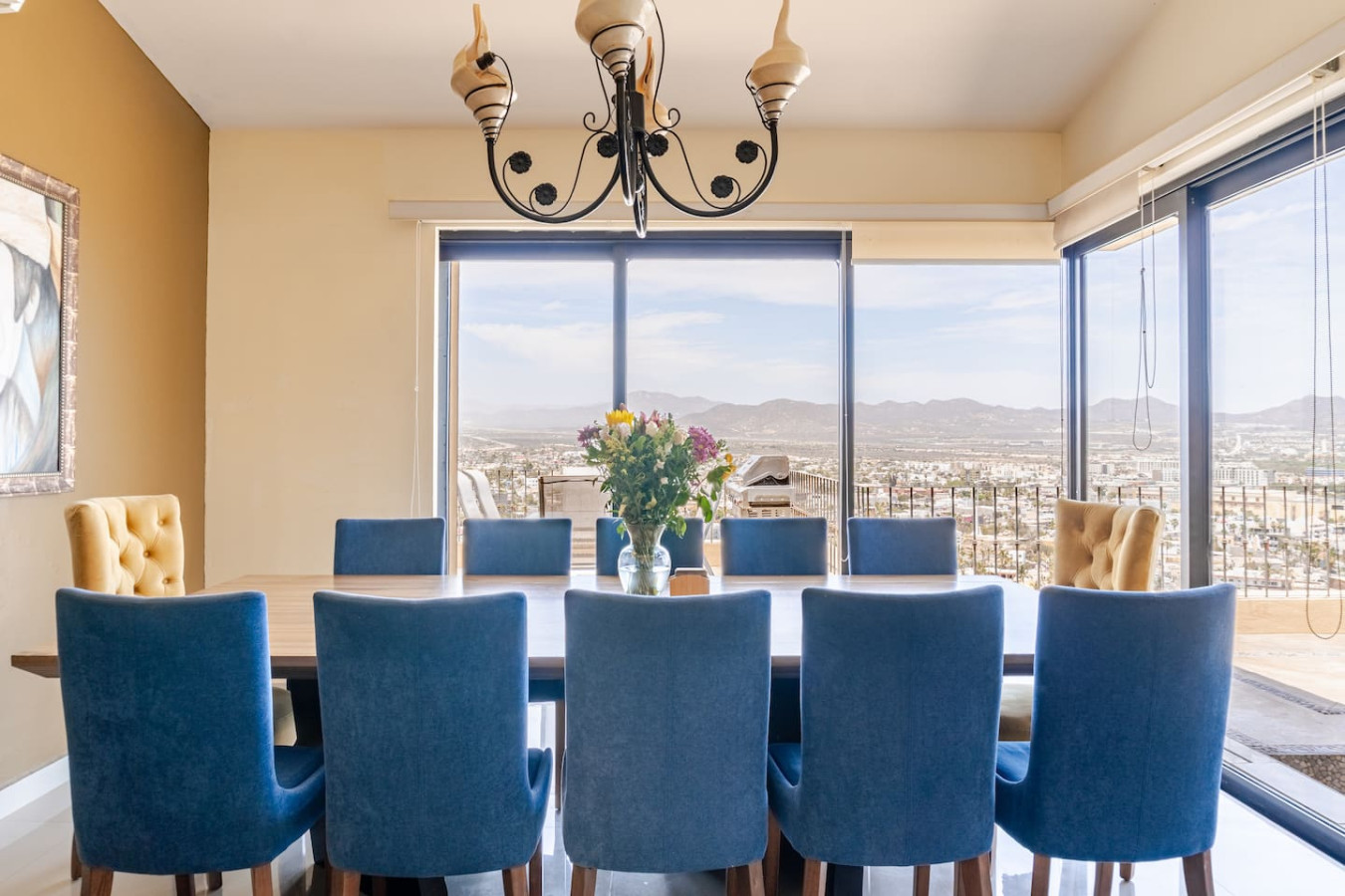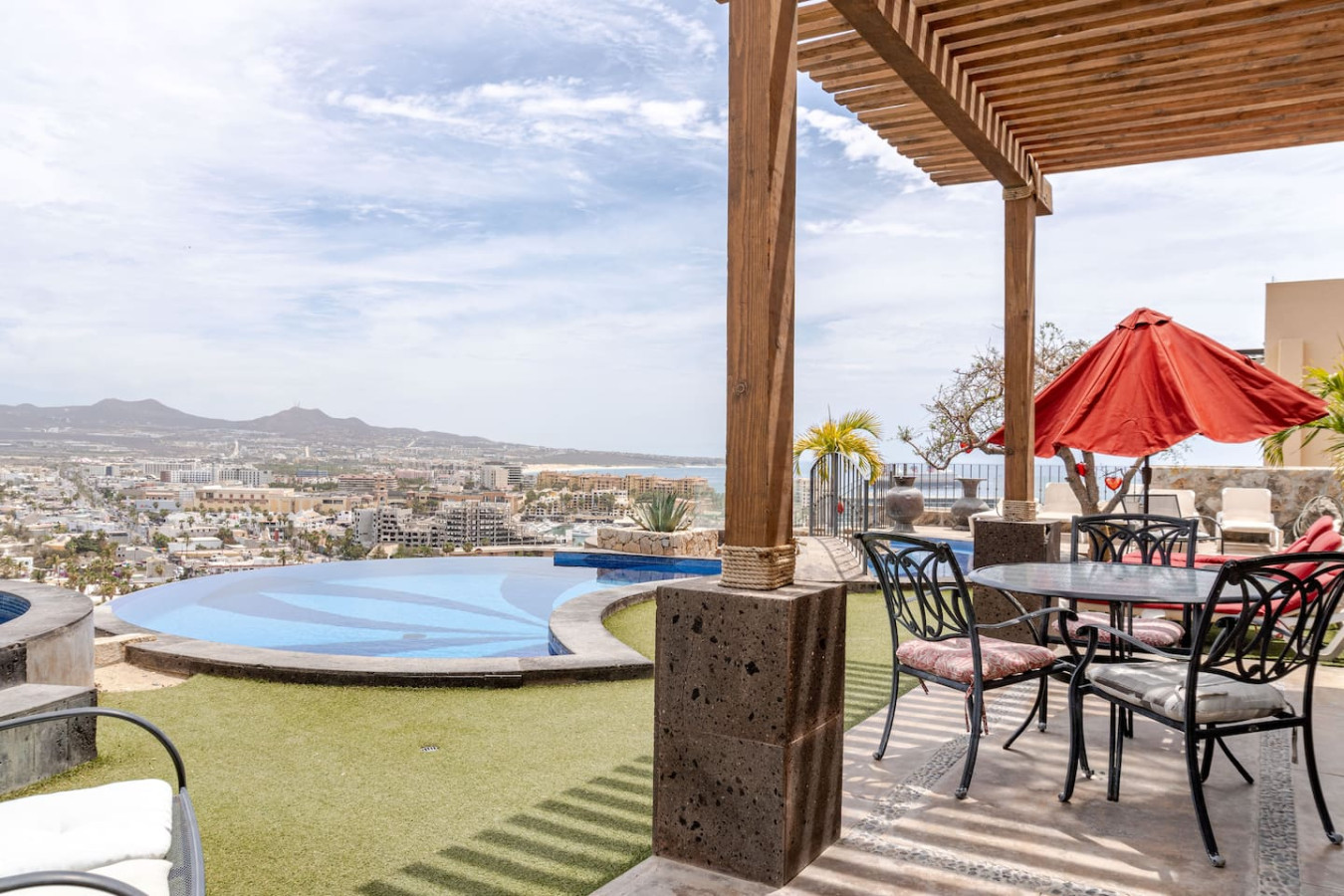 Villa Corazon de Fatima offers quality and timeless style with beautiful ocean, city lights, and mountain views, only a short walk from Cabos downtown dining, marina, and Cabos’ famous nightlife
